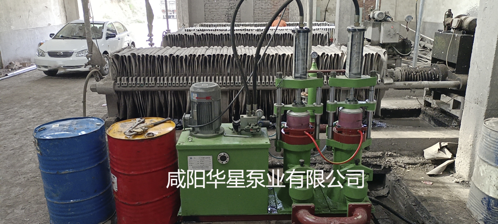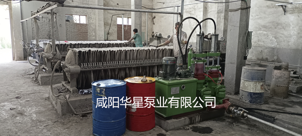 一臺(tái)華星YBH壓濾機(jī)專用節(jié)能泵給4臺(tái)壓濾機(jī)進(jìn)料